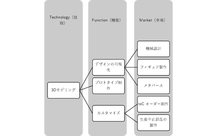 このフレームワークを使うと、技術の適用範囲が見えやすくなり、新たな市場を発見するヒントが得られます。